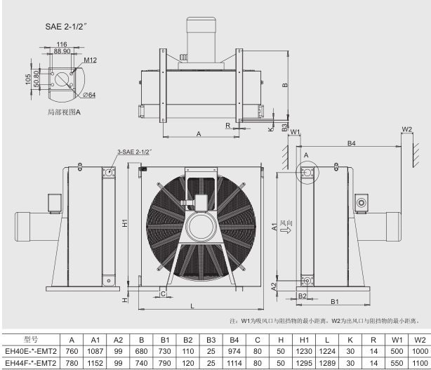 应用适用于:液压系统回油管路、独立冷却回路、润滑系统的冷却。 典型应用:煤矿机械、化工机械、矿山、隧道机械、油气田设备、天然气加气站、船舶机械的液压动力站、润滑系统、齿轮变速箱的冷却。 产品特性 35bar静态额定压力,采用高性能ExdⅡ防爆电机和特殊材质的风叶,及特别的外壳防护设计,以达到防爆要求。加以紧凑散热片,以获取冷却效果。 每种形式均可提供2种转速,以便获取佳的工况性能。 可根据工矿要求增加压力旁通或温控旁通回路。易爆区域非特别要求不建议使用温度开关和过滤器。 8种配管方式可选,能满足任何需求,请参考配管示意图。特殊要求请与锦润联系。 进、出油口标准为:G螺纹或SAE标准法兰,其他牙口也可定制。 工作电压: AC380V、AC660V、AC1140V。 特殊电压请与锦润联系。